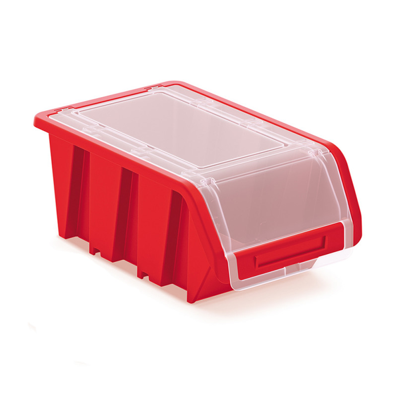Uzavíratelný plastový box s víkem Truck Plus v červené barvě pomáhá udržet pořádek při práci. Díky průhlednému víku vidíte obsah bez otevírání. Box lze ukládat jeden na druhý nebo upevnit na závěsný panel. Víko jde otevřít celé, nebo jen přední výklopnou částí, takže se snadno dostanete k obsahu i když jsou boxy na sobě.