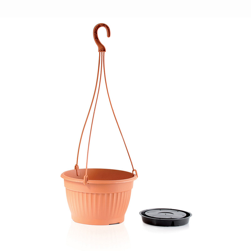 Samozavlažovací závěsný květináč, tentokrát z rodiny květináčů TERRA je vyroben z kvalitního plastu v charakteristickém designu pro květináče řady TERRA (okrasné vroubkováním po celém obvodu). Květináč je navíc vybaven vložkou, která odděluje zásobu vody od zeminy a v případě nadměrného zalévání Vám přebytečnou vodu odstraní (viz. foto). Díky tomuto zařízení Vám již nebude docházet k uhnívání rostlin v důsledku přelití a Vaše rostliny budou mít vždy dostatek vláhy.